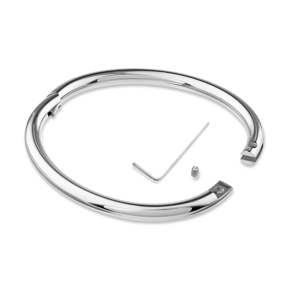 As always, the wearer should keep a key on their person at all times for medical reasons, but the act of tightening the set screws still carries a pleasant act of finality and intent. For such a dainty looking item, once closed and locked, the cuff is unbelievably sturdy and solid. Indistinguishable from "normal" jewelry, this timeless piece is an elegant adornment for all the eternal subs out there. Looking forward to our next Eternity purchase.