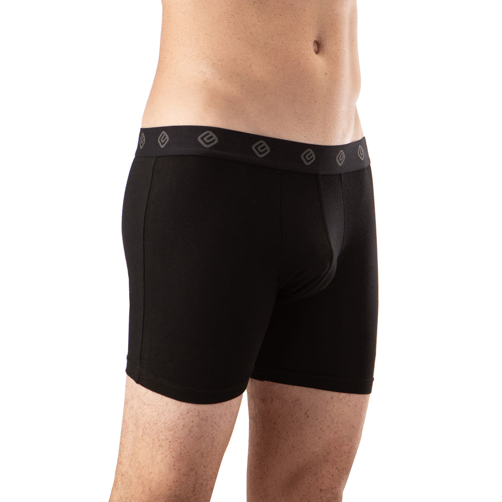 The Eternity boxer briefs are ultra-soft and sleek, made with a bamboo modal stretch blend for a luxurious feel. Finished with Eternity’s signature repeating logo waistband, a contoured pouch for smooth construction, and seaming details for a comfortable bottom layer.