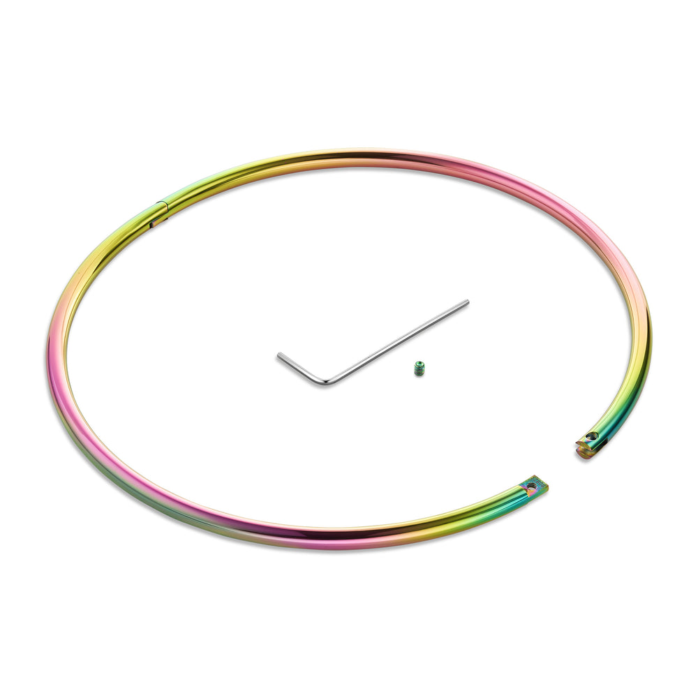The Thin Prism Eternity Collar combines a vibrant, colorful appearance with a sleek 5mm profile. This new design offers a more subtle option for those who prefer a less conspicuous collar with the same durability and unique finish as the regular Prism collars.